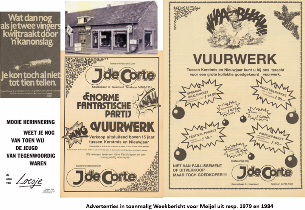 VUURWERK-VERBOD gaat na de komende jaarwisseling landelijk in! In vroegere tijden alleen te koop bij de Corte in Neerkant. Of het vuurwerk ooit “normaal” was? Lees het artikel in het weekbericht voor Meijel van december 1984: <KLIK HIER>