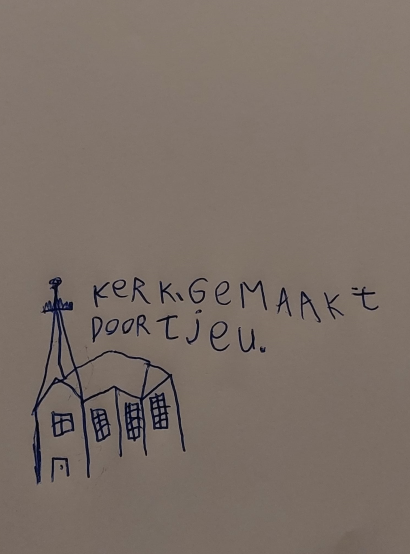 Zoals deze <klik hier>, bij het kinder-intentieboek op het oude originele schooltafeltje bij de Mariakapel.