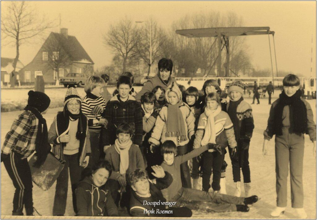 Schaatsen met de hele klas van de St.Annaschool uit Ospel, op de Noordervaart bij de Stoep. Schooljaar 1981-1982 met juf Gerrie van Hoof-Reijven. (Bron: facebook Doospel vreuger)