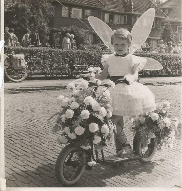 Toen er voor Koninginnedag een soort bloemencorso werd gehouden kon ook mijn vader het niet laten: